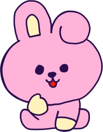 Cooky is a pink rabbit with slight yellow spots at the tip of his paws and his ears.